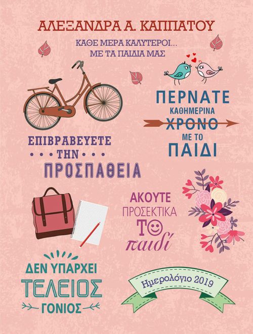 Η Αλεξάνδρα Α. Καππάτου, με τις γνώσεις, την εγκυρότητα και την πολυετή της εμπειρία από χιλιάδες οικογένειες που την εμπιστεύτηκαν από το 1986 έως σήμερα, πιστή στην ετήσια συνάντηση μαζί σας, ετοίμασε για το 2019 ένα διαφορετικό ημερολόγιο, το οποίο αφιερώνει σε όλη την οικογένεια αλλά κυρίως στους μικρούς ή μεγάλους πρωταγωνιστές της ζωής μας, στα παιδιά μας, τα οποία αξίζουν τον σεβασμό, την προσοχή και την αγάπη μας.