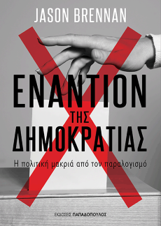 Από τις Εκδόσεις Παπαδόπουλος κυκλοφορεί το ρηξικέλευθο δοκίμιο του επίκουρου καθηγητή στο Πανεπιστήμιο Georgetown Jason Brennan με τίτλο Εναντίον της Δημοκρατίας: Η πολιτική μακριά από τον παραλογισμό.