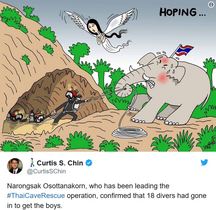 Οι σκιτσογράφοι πολλές φορές αποτυπώνουν με τρόπο συγκλονιστικό την επικαιρότητα. Τις τελευταίες ημέρες ολόκληρος ο πλανήτης κινείται στο ρυθμό δύο γεγονότων. Από τη μία η αγωνία για την τύχη των εγκλωβισμένων παιδιών στην Ταϊλάνδη και από την άλλη η τρελή φιέστα του Μουντιάλ. Ενας ταλαντούχος σκιτσογράφος συνδύασε αυτές τις δύο ειδήσεις με έναν πολύ συγκινητικό τρόπο.