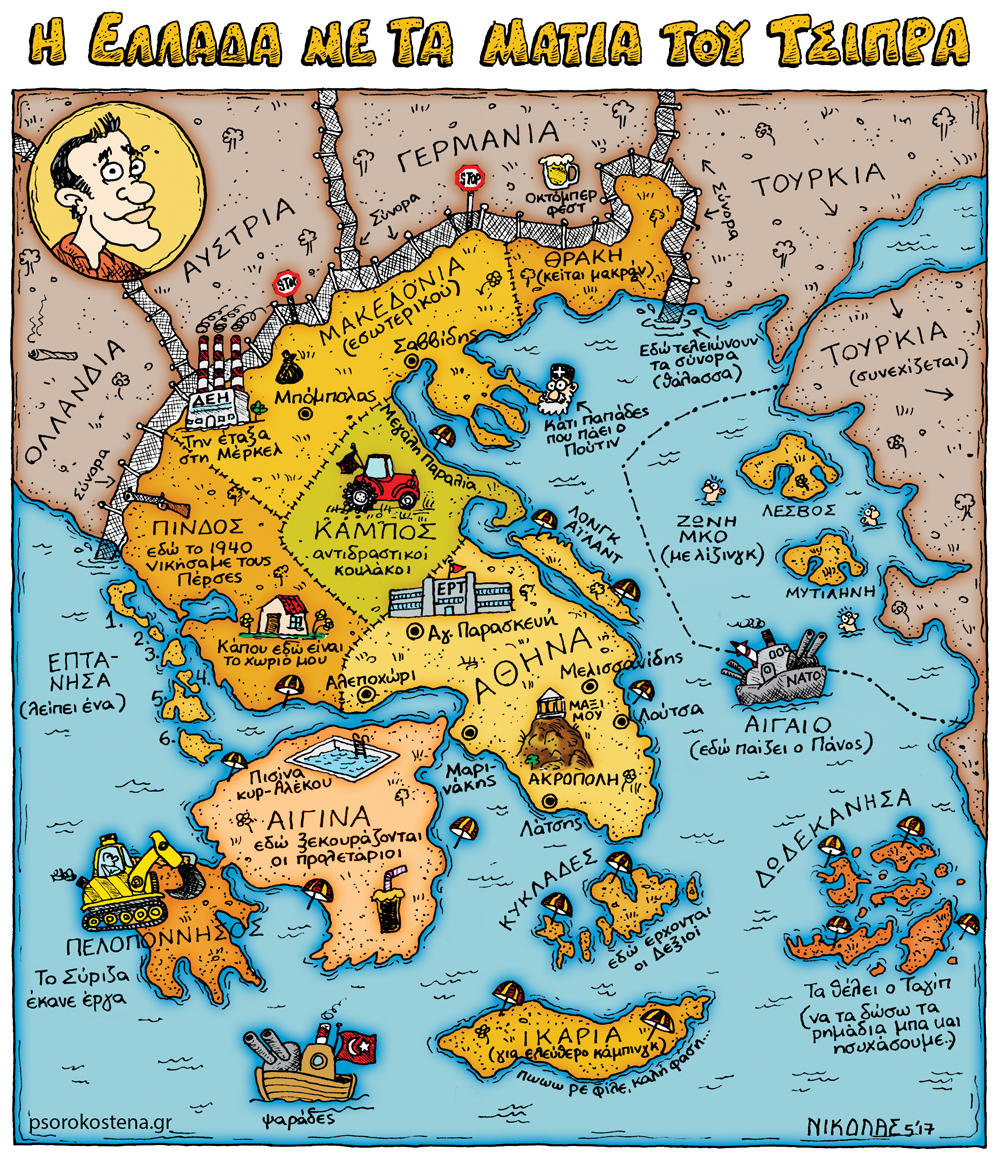 Η επιστήμη κάνει θαύματα και οι ρεπόρτερ μας μπόρεσαν να συνθέσουν έναν χάρτη της Ελλάδας, μπαίνοντας στο μυαλό του κυρίου Πρωθυπουργού και ανιχνεύοντας τις ενδόμυχες σκέψεις του…( iefimerida.gr)
