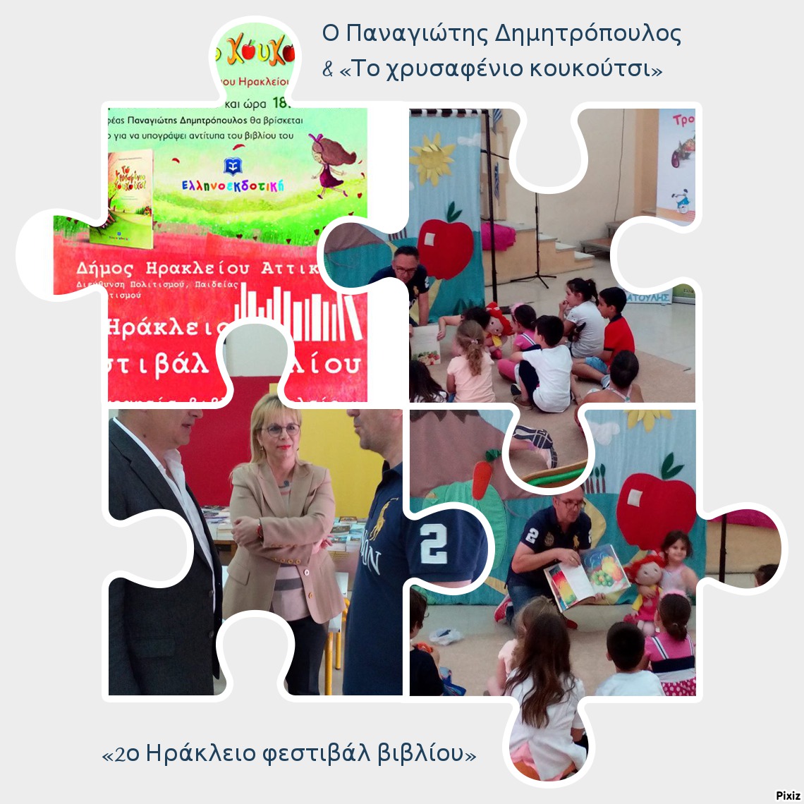 Ανάπαυλα το μεσημέρι και όταν ήρθε η ώρα που ο Παναγιώτης Δημητρόπουλος, με την παρουσία του Δημάρχου κ. Νίκου Μπάμπαλου & και της Αντιδημάρχου Πολιτισμού κας. Δέσποινας Αϊβατζίδου - Ποριώτου θέλησε να παρουσιάσει «Το χρυσαφένιο κουκούτσι», από τις εκδόσεις Ελληνοεκδοτική. Οι μικροί «αναγνώστες» δεν τον άφησαν λεπτό να μην τον ρωτούν για την ιδιαιτερότητα αυτού του βιβλίου.