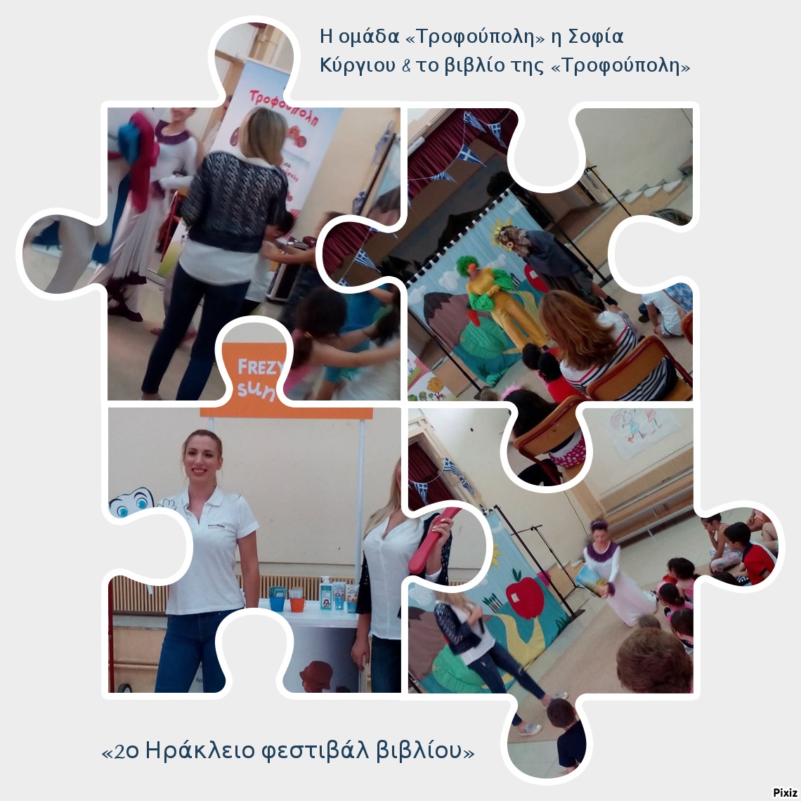 Στις 19:00 η ομάδα «Τροφούπολη» παρουσίασε μια πρωτότυπη θεατρική παράσταση, βασισμένη στο βιβλίο της Κύργιου Σοφίας, «Τροφούπολη», των εκδόσεων Ελληνοεκδοτική. Το χειροκρότημα γέμισε την αίθουσα, με τη συγγραφέα να «χάνεται» μέσα στο παιχνίδι που στήθηκε στη συνέχεια με τον «Δοντούλη» και την FREZYDERM, χορηγό της παράστασης… προσφέροντας δώρα σε όσους ήταν εκεί, με κυρίαρχο στόχο την φροντίδα και την πρόληψη.