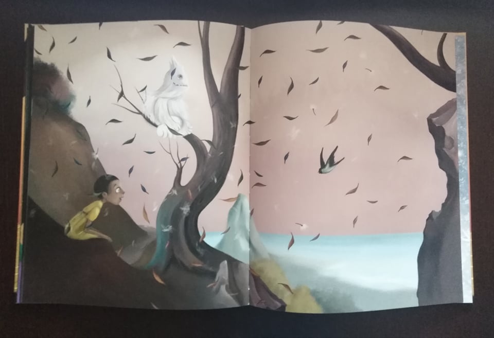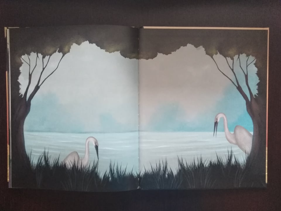 Νίκος: Η εικονογράφηση ακολούθησε το κείμενο. Είχα πολύ συγκεκριμένη εικόνα στο μυαλό μου για το βιβλίο αυτό…φθινοπωρινά χρώματα, μαύρα κόκκινα και καφέ. Είχα μια πολύ μελαγχολική διάθεση όταν το ζωγράφιζα.