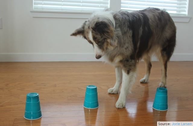 Στη συνέχεια, τοποθέτησε 3 ποτήρια ανάποδα με μία απόσταση μεταξύ τους. Βάλε τη λιχουδιά κάτω από ένα από τα ποτήρια ενώ ο σκύλος σου σε παρακολουθεί. Βγάλε τον κύριο Κουτάβη έξω από το δωμάτιο για 30 δευτερόλεπτα και ξαναφέρτον μέσα, παρακινώντας τον να βρει τον μεζέ. Ξεκίνα τη χρονομέτρηση μέχρι να το βρει.