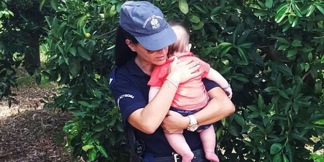 Στο σημείο έτρεξε μια γυναίκα αστυνομικός και ζήτησε να κρατήσει στα χέρια της το βρέφος, που τελικά φάνηκε να ηρεμεί.