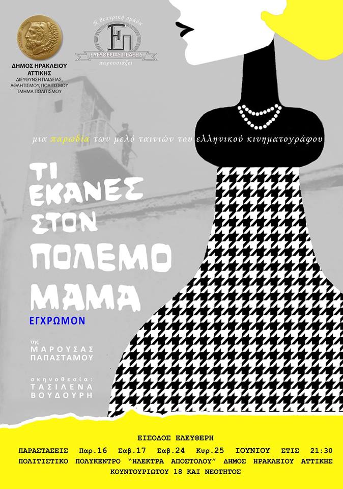 Κάθε καλλιτεχνική δράση με γεμίζει ενέργεια. Η φετινή παράσταση με γέμισε και περηφάνια γιατί το θεατρικό κείμενο το έγραψε η Μαρούσα Παπαστάμου και εγώ το σκηνοθέτησα. Η Μαρούσα είναι ενεργό μέλος της θεατρικής ομάδας «Ελευθερίας πράξεις» εδώ και 5 χρόνια! Την ευχαριστώ για την εμπιστοσύνη που μου έδειξε...