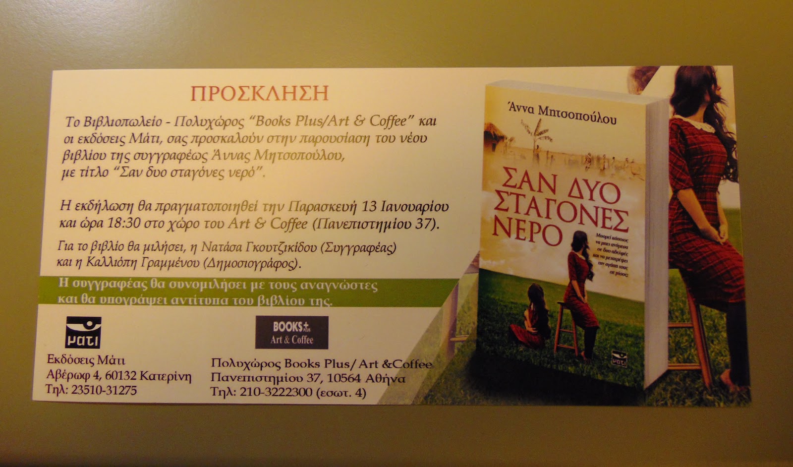 ...η Άννα Μητσοπούλου παρουσίασε το βιβλίο της «Σαν δυο σταγόνες νερό»… που κυκλοφορούν από τις εκδόσεις «μάτι».