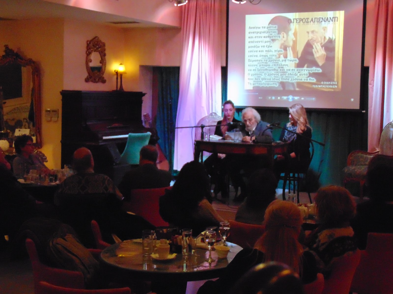 έβαλε όλους στο κλίμα της παρουσίασης, για ν’ ακολουθήσει η ομιλία της συγγραφέως Έφης Μαχιμάρη…