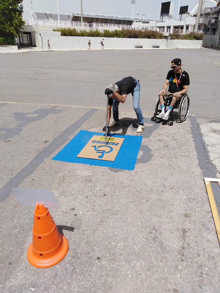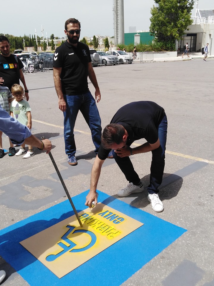 στάθμευσης του κολυμβητηρίου του ΟΑΚΑ, πραγματοποιήθηκε μια συνάντηση συλλόγων, ομάδων, σωματείων και απλών πολιτών, για καλό σκοπό.Αυτός ο σκοπός δεν ήταν άλλος από το να γίνει η διαγράμμιση των θέσεων στάθμευσης για άτομα με αναπηρία, τιμώντας έτσι την Ολυμπιακή ημέρα, που ημερολογιακά είναι στις 23 Ιουνίου... θυμίζοντας στους «απρόσεκτους» ή «αδιάφορους» συμπολίτες μας, πως αυτοί οι άνθρωποι έχουν θέση στη ζωή μας, στην κοινωνία μας, σε κάθε μας δράση.