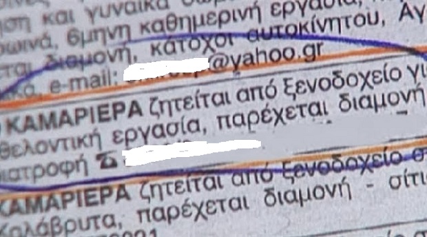 και με την οποία ένας ξενοδόχος από την Αίγινα ζητά καμαριέρα για το ξενοδοχείο του. Όπως φαίνεται στην αγγελία, ο ξενοδόχος ζητά καμαριέρα για «εθελοντική εργασία» προσφέροντας στέγαση και φαγητό!Η αγγελία κάνει το γύρο του διαδικτύου...