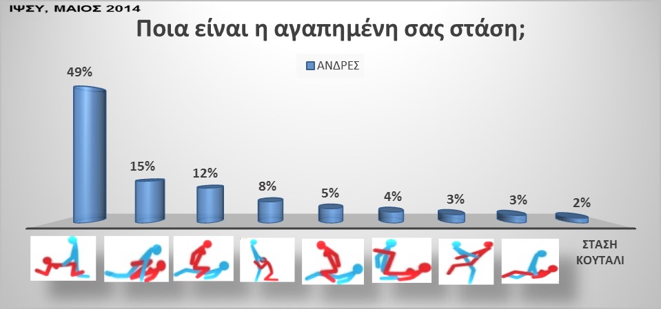 Έρευνα που πραγματοποίησε το Ινστιτούτο Ψυχικής κ’ Σεξουαλικής Υγείας σε 1036 άτομα με θέμα: «Έχουν σημασία οι στάσεις στο σεξ;» αναδείχθηκαν μεταξύ άλλων οι πιο δημοφιλείς στάσεις του σεξ που προτιμούν οι Έλληνες και οι Ελληνίδες.