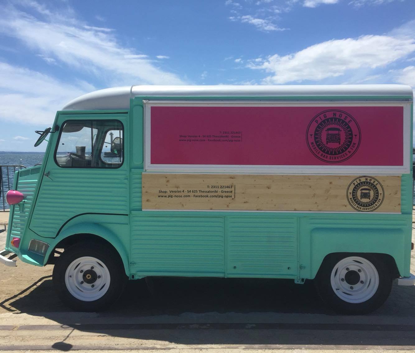 Το πρώτο van bar στην Ελλάδα, ταξίδεψε από το Βέλγιο μέχρι τη Θεσσαλονίκη, όπου άρχισε και η ανακατασκευή η οποία κράτησε 7 μήνες. Με βεραμάν περίβλημα, ροζ φανάρια και λευκή οροφή αποκλείεται να περάσει απαρατήρητο όπου κι αν σταθμεύσει. Εσωτερικά είναι ένα πλήρες διαμορφωμένο bar, με υπερπλήρη και λειτουργικά bar stations, με ψυγεία στους -2oC, ώστε τα ποτήρια στα οποία σερβίρονται τα cocktails να βγαίνουν παγωμένα, για ακόμη μεγαλύτερη απόλαυση.