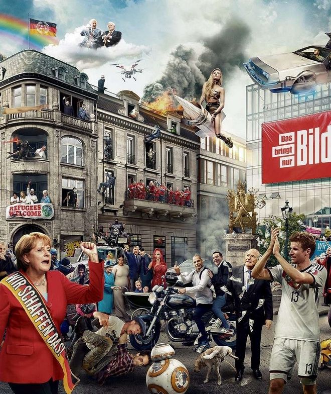Στο κολάζ απεικονίζονται συνολικά 60 διαφορετικά θέματα που επέλεξε η μεγαλύτερη σε κυκλοφορία γερμανική εφημερίδα.
