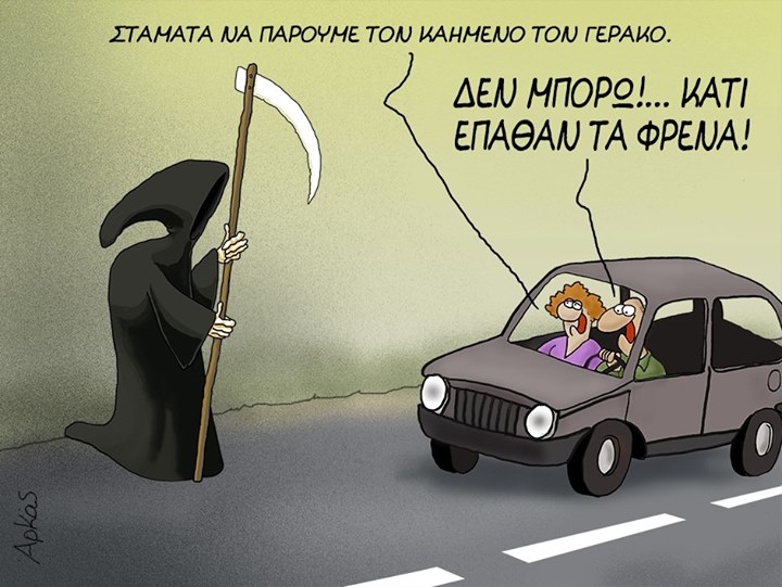 Αυτό που δεν περιμέναμε όμως, είναι ότι τα τελευταία του τρία «Μαύρα» θα ξεπερνούσαν κάθε προηγούμενο.Με φόντο τον Χάρο, ο Αρκάς εξακολουθεί να μας χαρίζει άπλετο γέλιο και να μας κάνει να ξημεροβραδιαζόμαστε στην επίσημη σελίδα του.