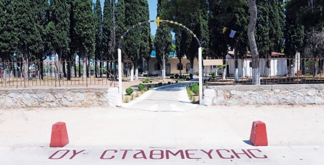 το ευφάνταστο απαγορευτικό προς τους οδηγούς Ι.Χ με τη φράση «Ου σταθμεύσεις»!!!Με τον τρόπο αυτό οι υπεύθυνοι του ναού θέλουν να περιορίσουν την άναρχη και ανεξέλεγκτη στάθμευση αυτοκινήτων έξω από την εκκλησία!!! (nifitsa)