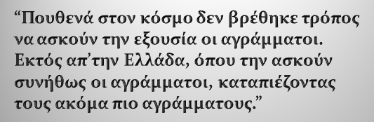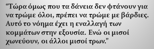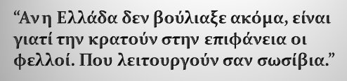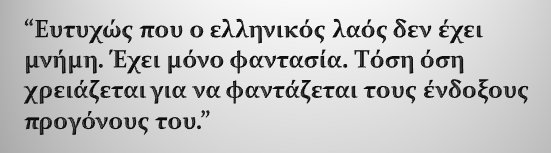 που στέκεται περισσότερο στις αρνητικές πτυχές των γεγονότων.Με ιδιαίτερες αναφορές στους δοσίλογους, στους προδότες και στους πατριδοκάπηλους, ο Ραφαηλίδης χτυπάει αλύπητα (και με πολύ χιούμορ) την επίσημη Ιστορία. Και ανάμεσα στο σφυροκόπημα, πετάει και μια σειρά από ατάκες, που σήμερα ίσως να τις λέγαμε και «tweets».