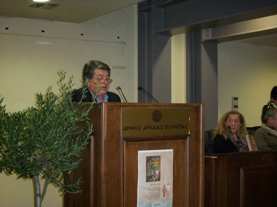 Τον συγγραφέα προλόγισε ο αντιδήμαρχος Αρχαίας Ολυμπίας κ. Γιώργος Γεωργακόπουλος που τόνισε ότι θεωρεί τιμητικό και ελπιδοφόρο την διοργάνωση τέτοιων εκδηλώσεων στον παγκόσμιο αυτό χώρο του Πολιτισμού και αθλητισμού, στην Ολυμπία.