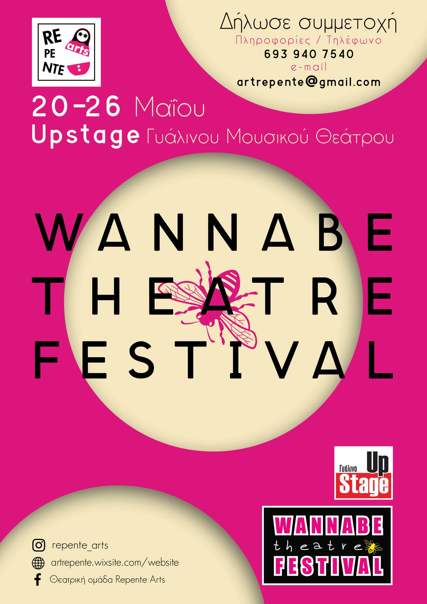 Οι ενδιαφερόμενοι καλούνται να στείλουν email μέχρι τις 29/3/2024 στο Αυτή η διεύθυνση ηλεκτρονικού ταχυδρομείου προστατεύεται από τους αυτοματισμούς αποστολέων ανεπιθύμητων μηνυμάτων. Χρειάζεται να ενεργοποιήσετε τη JavaScript για να μπορέσετε να τη δείτε. με τα επισυναπτόμενα αρχεία με θέμα: ΣΥΜΜΕΤΟΧΗ ΣΤΟ WANNABE THEATER FESTIVAL