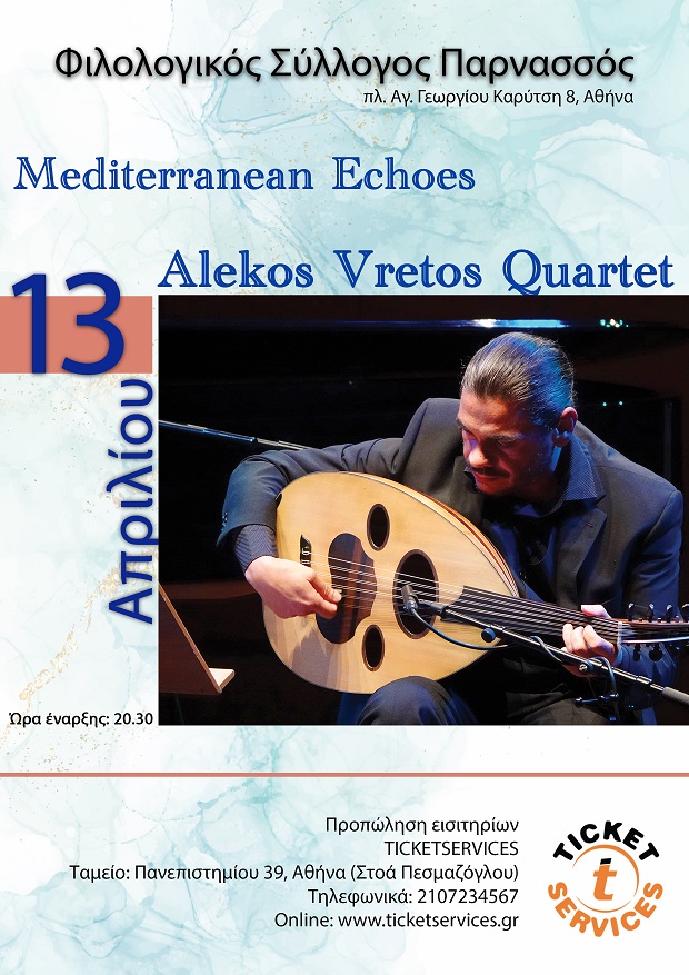Το καινούργιο πρότζεκτ του Αλέκου Βρέτου, Mediterranean Echoes, που θα παρουσιάσει στις 13 Απριλίου στον Φιλολογικό Σύλλογο Παρνασσός, δεν περιλαμβάνει κρουστά ή ντραμς. Εδώ ο ρυθμός υπονοείται, αφήνοντας χώρο στους μουσικούς να χρησιμοποιήσουν τις μελωδίες για να πουν αυτό που θέλουν.