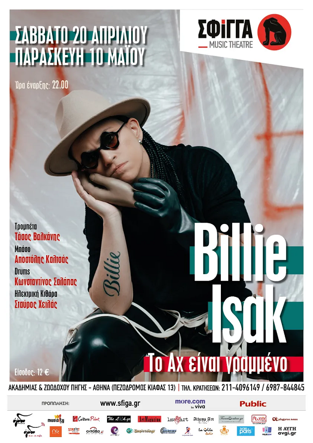 Η πολυτάλαντη και ανατρεπτική δημιουργός και ερμηνεύτρια Billie Isak έρχεται για δύο παραστάσεις στην μουσική σκηνή Σφίγγα, το Σάββατο 20 Απριλίου και την Παρασκευή 10 Μαΐου.