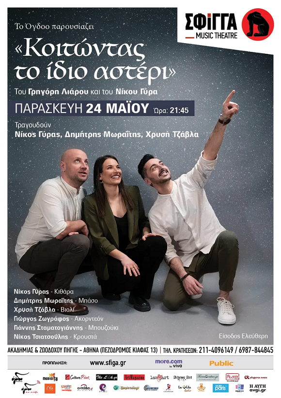 Το Όγδοο παρουσιάζει το νέο άλμπουμ "Κοιτώντας ένα αστέρι", των ερμηνευτών Νίκου Γύρα, Χρυσής Τζάβλα και Δημήτρη Μωραίτη την Παρασκευή 24 Μαΐου στη Σφίγγα.