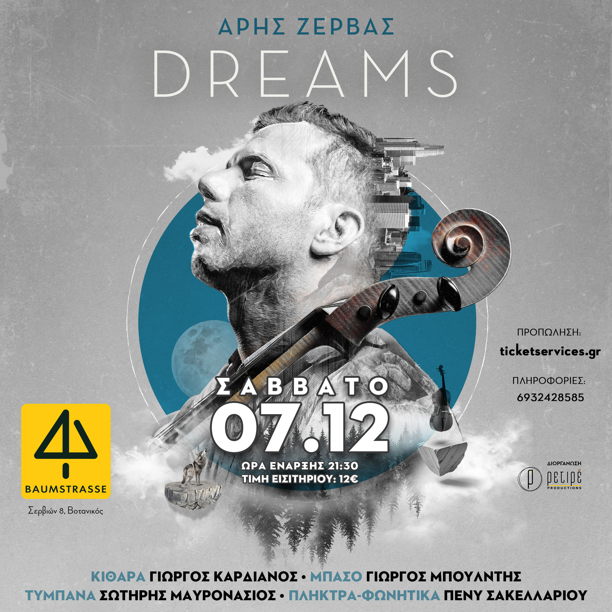 Το νέο του μουσικό project με την ονομασία «DREAMS» διαμορφώθηκε τα τελευταία χρόνια μέσα από τα ακούσματα και την μουσική του διαδρομή. Από την πανδημία μέχρι σήμερα, δικές του ορχηστρικές μελωδίες και τραγούδια, αποτυπώνουν τις ανησυχίες, τις σκέψεις και τελικά τα όνειρα μας για το μέλλον.