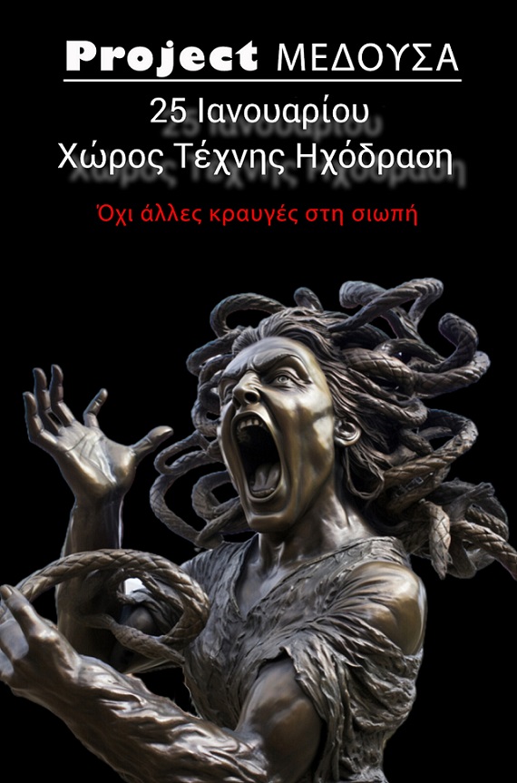 Η θεατρική παράσταση «Project ΜΕΔΟΥΣΑ» έκανε την τιμητική της πρεμιέρα στο θέατρο Ροές στις 25 Νοεμβρίου. Η συγκεκριμένη ημερομηνία δεν ήταν τυχαία, όπως και η ιστορία που πραγματεύεται η παράστασή μας. Λόγω της μεγάλης επιτυχίας αποφασίσαμε να την μεταφέρουμε στον χώρο μας ώστε να δώσουμε την ευκαιρία να την δουν όσοι περισσότεροι μπορούν.
