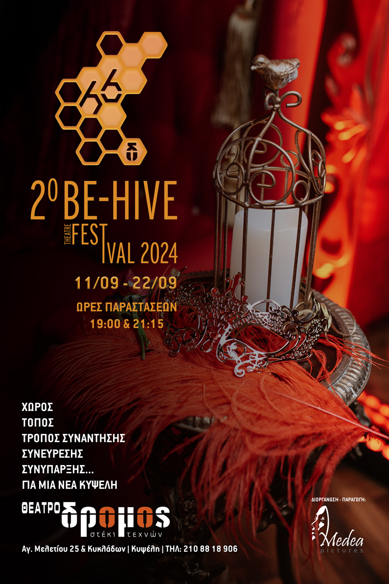 Με μεγάλη χαρά σας καλωσορίζουμε στο φετινό 2ο BE – HIVE THEATRE FESTIVAL 2024 του Θεάτρου ΔΡΟΜΟΣ. Το φεστιβάλ αποτελεί το αποκορύφωμα μιας συλλογικής προσπάθειας, γεμάτη από πάθος, δημιουργικότητα και αφοσίωση των συνεργατών της Medea Pictures για την ανάδειξη νέων προτάσεων που θα παρουσιαστούν στην σκηνή του Θεάτρου ΔΡΟΜΟΣ. Καθώς γιορτάζουμε το θέατρο σε όλες του τις μορφές, είμαστε ενθουσιασμένοι που μπορούμε, δίχως καμία κρατική βοήθεια, έργα και προτάσεις που εξερευνούν τον ανθρώπινο ψυχισμό, τις κοινωνικές προκλήσεις και την ατέρμονη αναζήτηση των καλλιτεχνών, να τους δίνεται βήμα, σε νέες εκφράσεις δημιουργικότητας.
